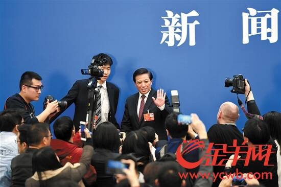 大会发言人张业遂回答中外记者提问 羊城晚报特派北京记者 汤铭明摄