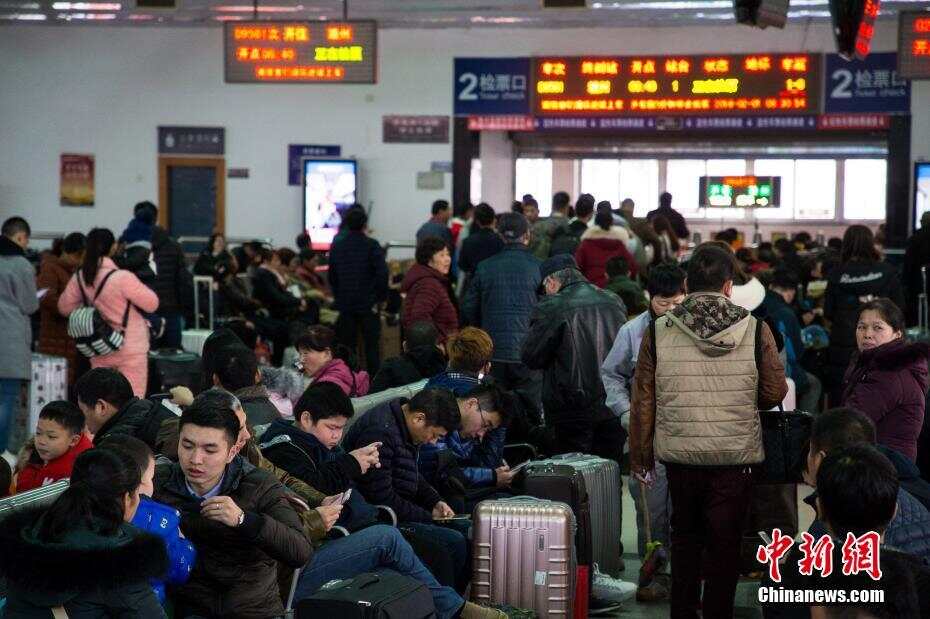 2月1日,2018年春运大幕拉开,福州火车站迎来客流高峰。候车室以及售票处人头攒动,挤满了旅客。2018年春运从2月1日开始至3月12日结束,共计40天。据福州火车站数据分析,预计今年春运40天将发送旅客360万人,较去年增长2.46%,日均发送9.00万人。2月8日至14日为外来务工人员返程高峰,最高峰日发送旅客预计达12万人。图为候车室内挤满了旅客。李南轩 摄