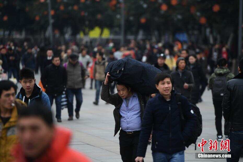 2月1日,重庆火车北站广场上众多旅客踏上返乡路。当日,2018中国春运启幕。