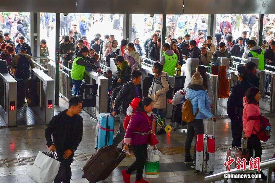 2月1日,旅客进入昆明火车站准备乘车。当日,为期40天的中国春运正式拉开大幕。中新社记者 刘冉阳 摄