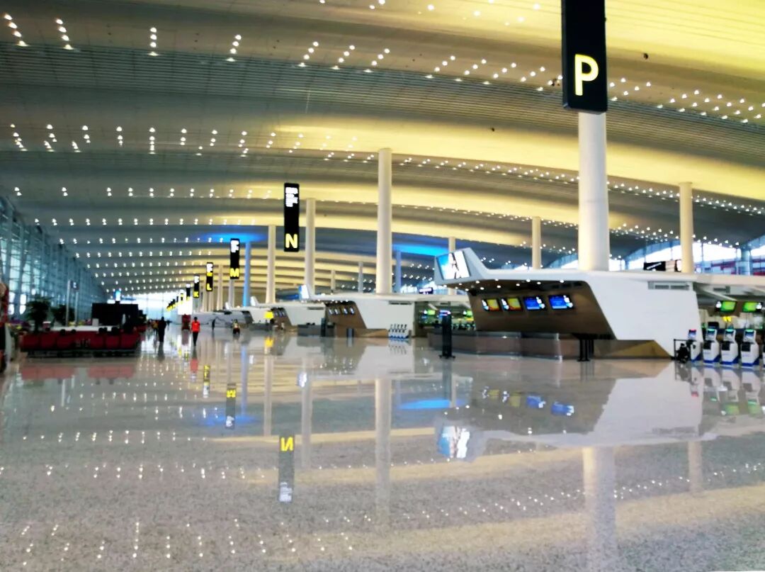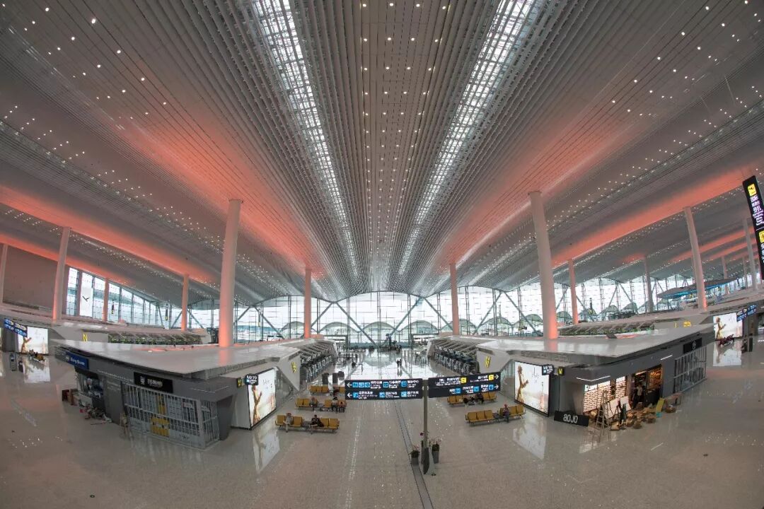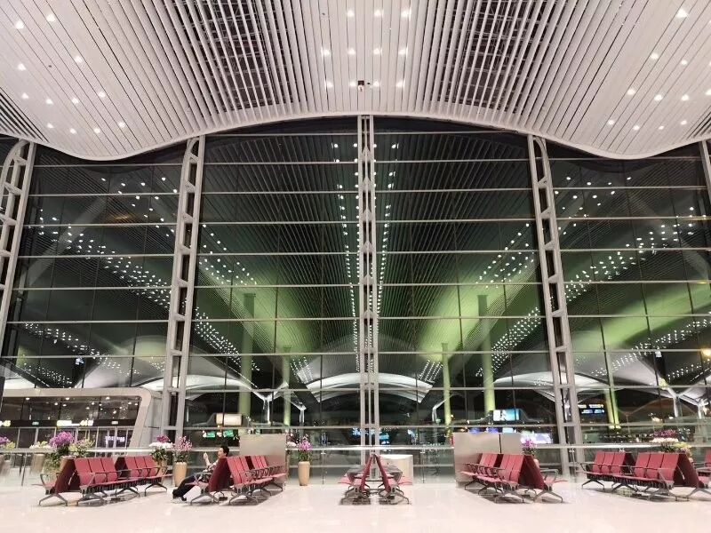 今天全新启用的2号航站楼建筑面积为65.87万平米,综合交通中心(GTC)建筑面积22.2万平方米,设计容量为年旅客量4500万人次。