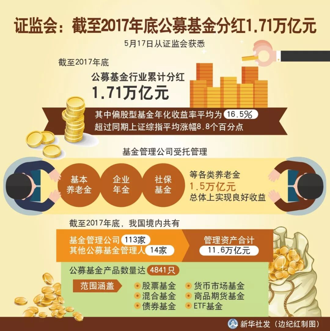 证监会称,截至2017年底,全国公募基金行业累计分红1.71万亿元。
