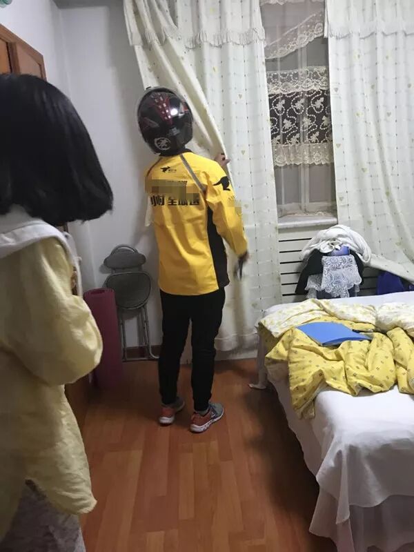 这时,一直在天花板上爬来爬去的虫子竟然不见了,外卖小哥在虫子活动区域的窗帘附近仔细找了好几遍,那条困扰小姐妹多时的虫子却不知跑到哪里去了。