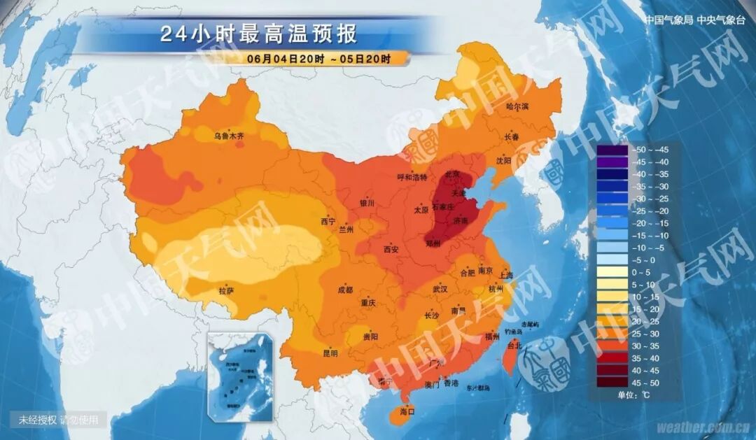 今明两天,华北、黄淮等地有35-38℃的高温天气,局地最高温可达40℃。未来五天,华南中东部有强降雨,局地伴有雷暴大风等强对流天气。