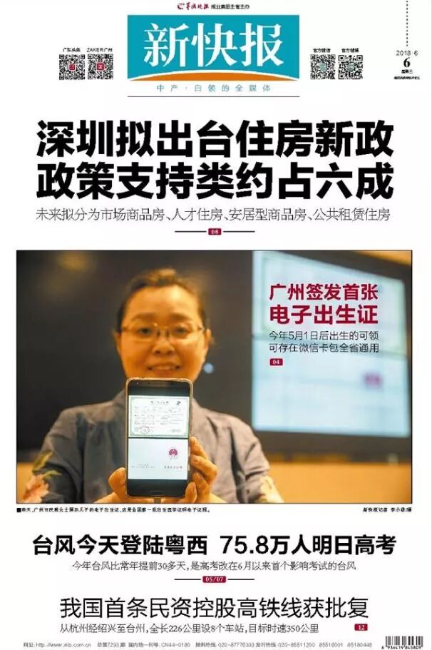 今天,广州正式在“粤省事”签发全国第一张“出生医学证明电子证照”!电子出生证与纸质出生医学证明在省内具同等法律效率,群众不用提交纸质出生医学证明,办事部门可实行网上电子证照查验。