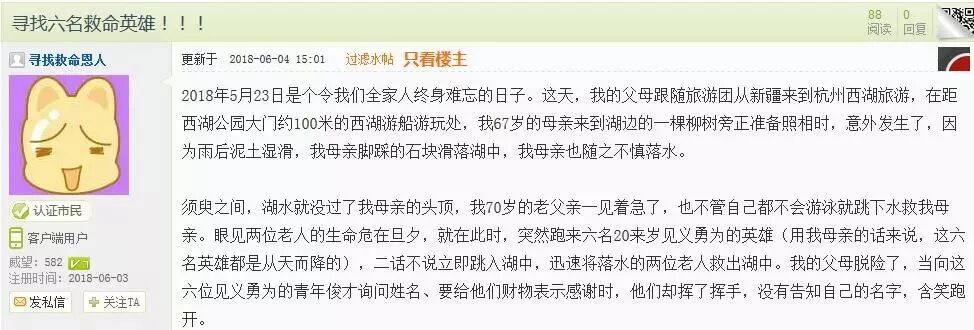 这两天,浙江杭州本地的一个论坛上出现了一则“寻找6名救命恩人”的帖子,暖遍了杭州人的朋友圈——