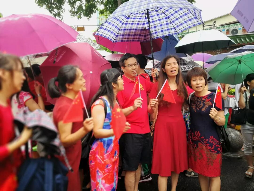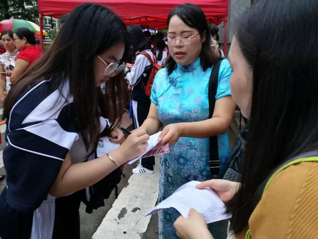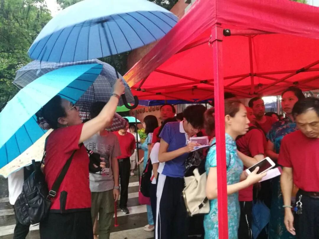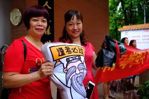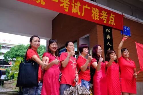 广州市省实考点门前的“红色娘子军”,妈妈助威团好给力!