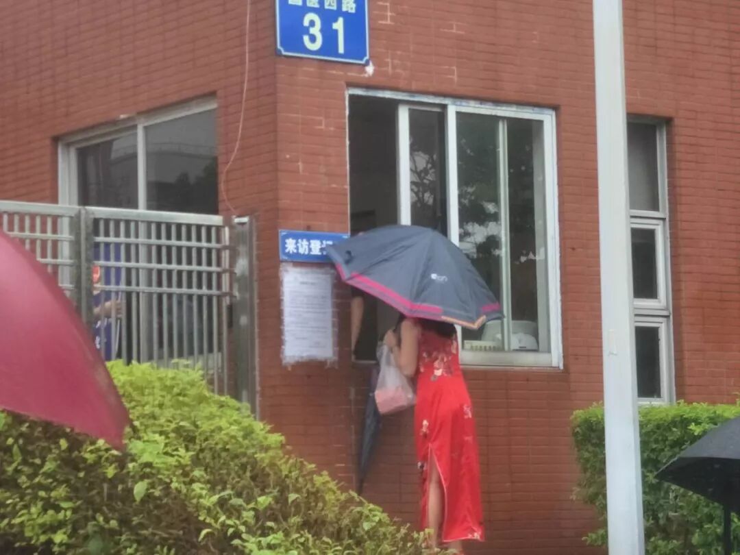 早上8:00,深圳市开始下着暴雨,考生冒着暴雨走进考场。