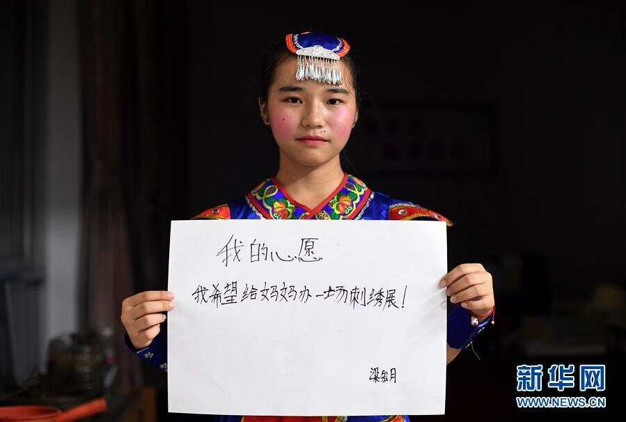 在广西柳州市三江侗族自治县洋溪乡中心小学,梁宏月展示她的“六一”心愿(5月30日摄)。新华社发(黎寒池摄)
