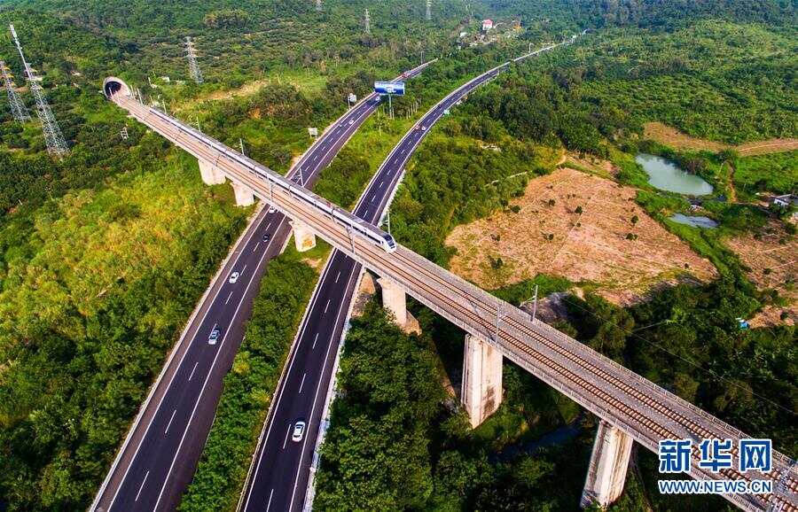 这是2016年10月11日无人机拍摄的海南环岛高铁东线三亚段。新华社记者 杨冠宇 摄 图片来源:新华网