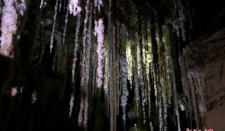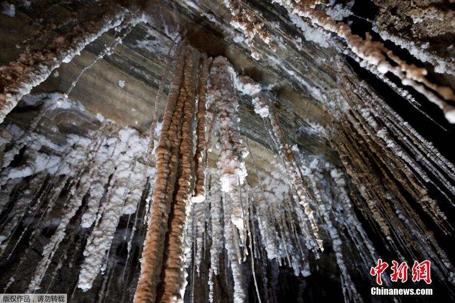 当地时间3月27日,以色列洞穴探险者俱乐部成员在死海西南部索多姆山(Mount Sodom)马勒姆盐洞(Malham salt cave)观察盐钟乳石。希伯来大学洞穴研究中心带领的来自九个不同国家的国际考察团已经绘制出10公里长的马勒姆盐洞内部图,该洞穴是在1980年代首次发现的,被誉为世界上最长的盐岩洞。