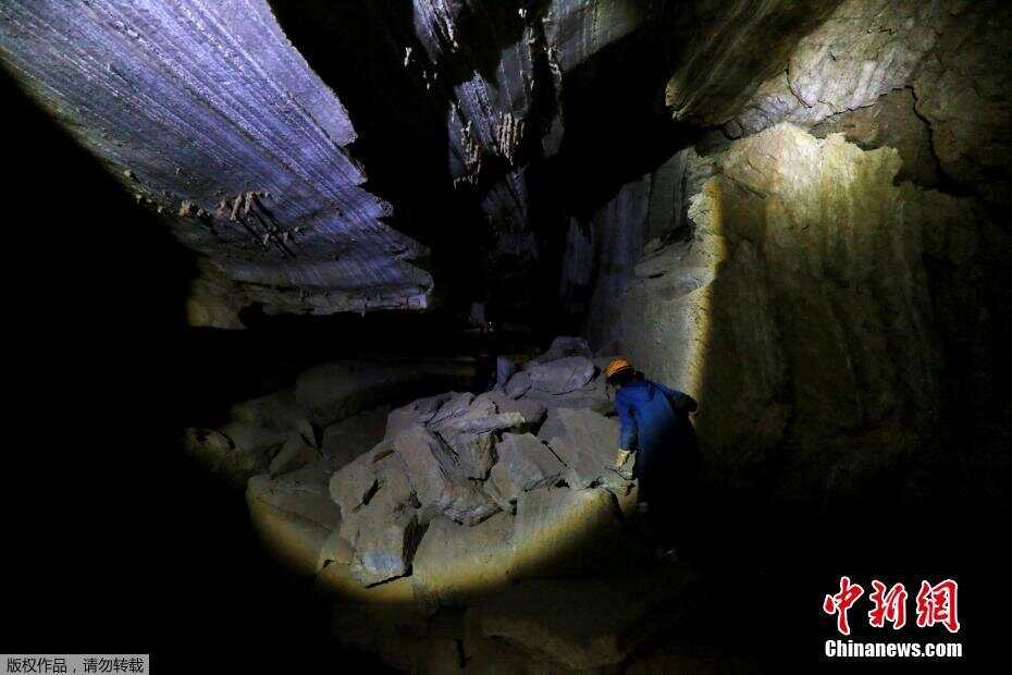 当地时间3月27日,以色列洞穴探险者俱乐部成员在死海西南部索多姆山(Mount Sodom)马勒姆盐洞(Malham salt cave)观察盐钟乳石。希伯来大学洞穴研究中心带领的来自九个不同国家的国际考察团已经绘制出10公里长的马勒姆盐洞内部图,该洞穴是在1980年代首次发现的,被誉为世界上最长的盐岩洞。