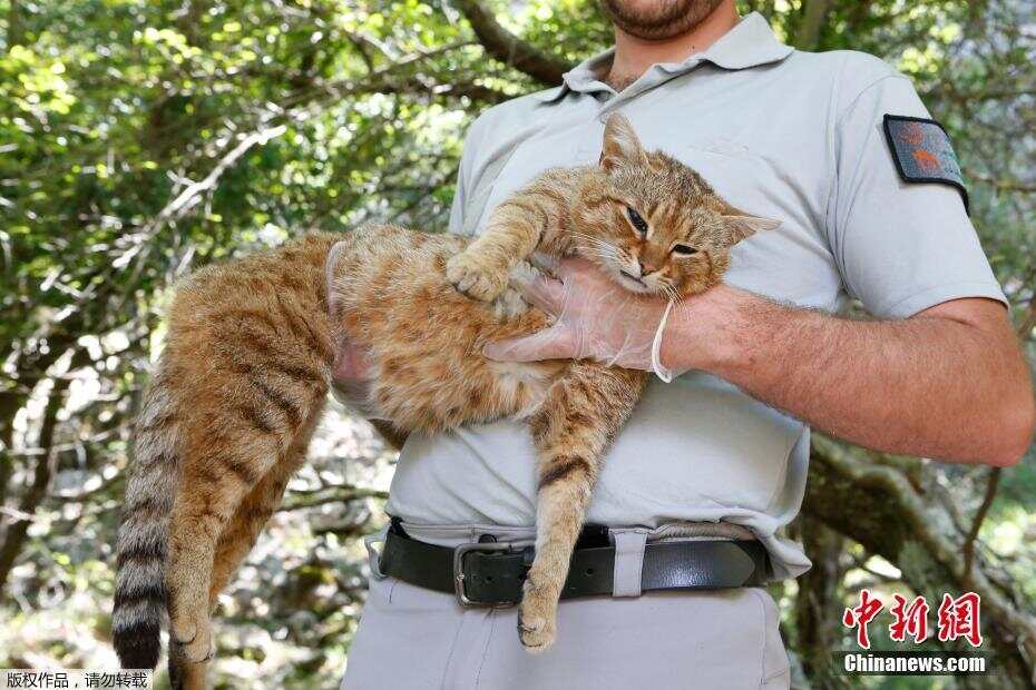 近日,法国森林和狩猎办公室在科西嘉岛发现“狐猫”(fox-cat)。据ONCFS介绍,在科西嘉岛上发现的“狐猫”,是一种新的猫科物种。图为法国森林和狩猎办公室举起一只“狐猫”。
