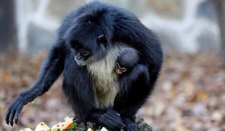 当地时间11月19日,捷克德辛,当地动物园一只新生的蜘蛛猴宝宝首次亮相。