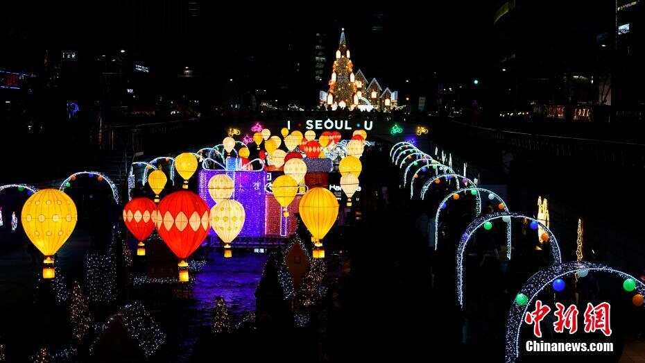 2020年1月1日,在首尔清溪川亮起彩灯迎接新年。中新社记者 曾鼐 摄