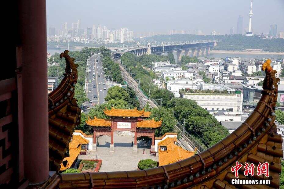 黄鹤楼上远眺武汉长江大桥。中新社记者 张畅 摄