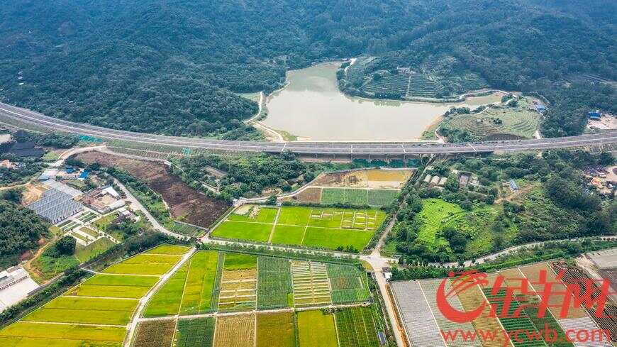 “花莞高速”华农大桥段,道路从水库和农田上穿过