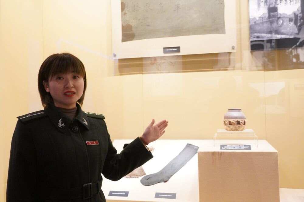 井冈山革命博物馆内讲解员龙艳正在向参观人员介绍先辈为红军“带盐”的故事。(张欢摄)