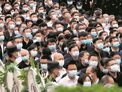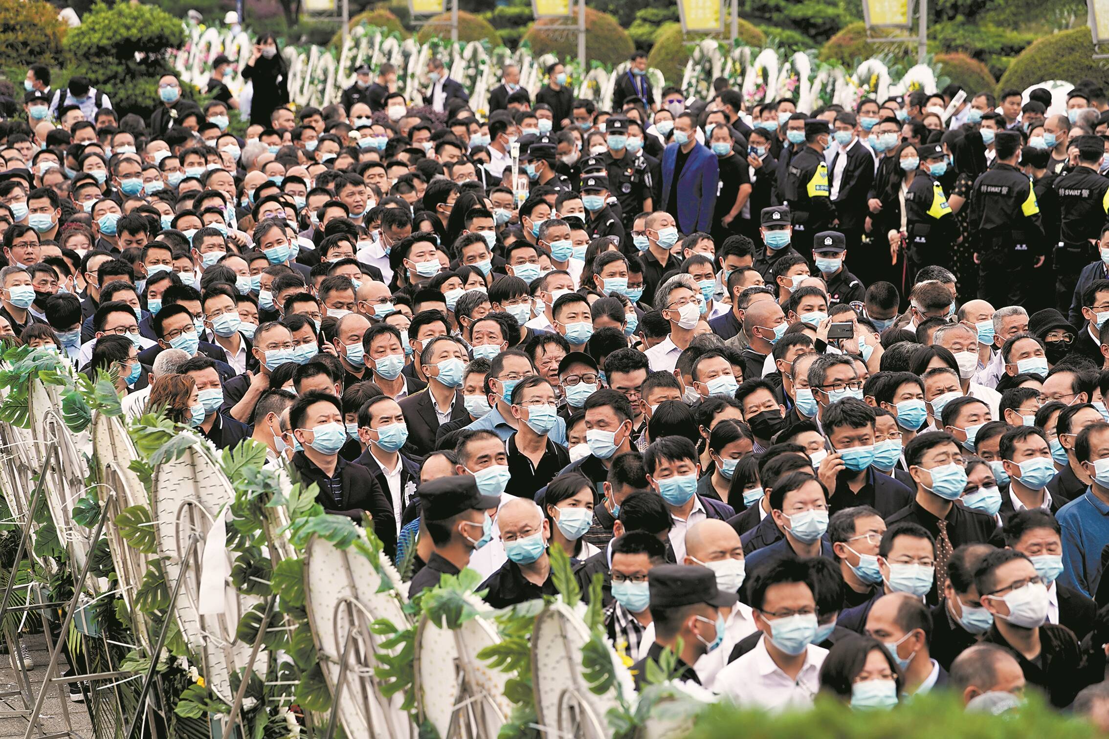 从凌晨起,人们就在明阳山殡仪馆门前排队等待送别。10时送别仪式开始时,队伍延伸约3公里。