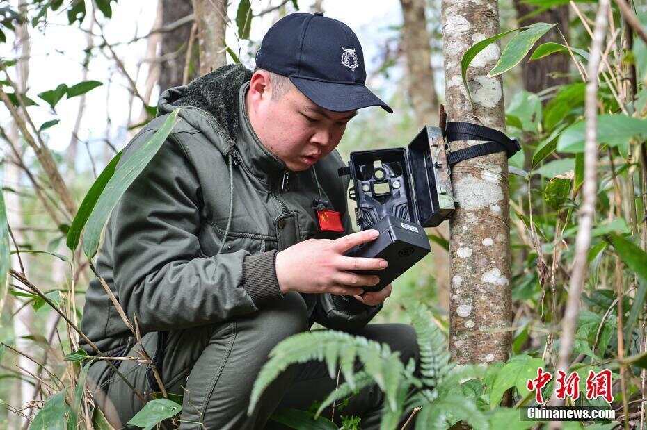 1月14日,广东省韶关市,广东南岭国家级自然保护区工作人员张崇万查看红外相机监测拍摄野生动物的情况。 中新社记者 陈骥旻 摄