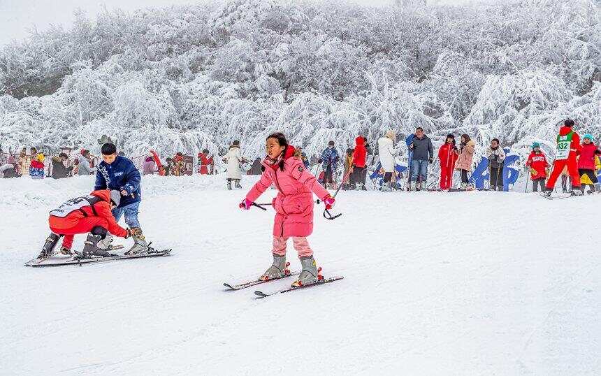 游客在金佛滑雪场体验滑雪。瞿明斌摄