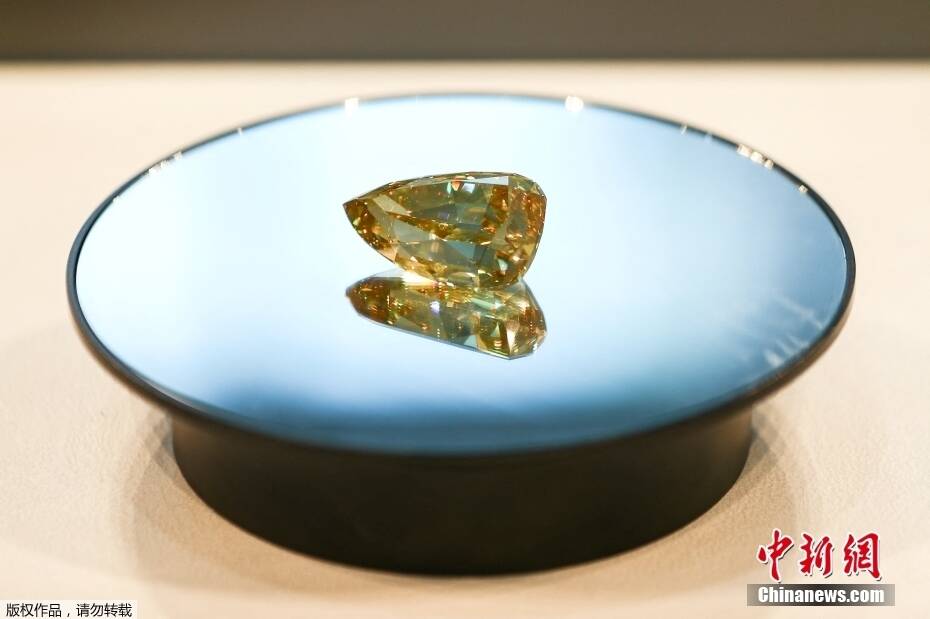 当地时间10月17日,苏富比在迪拜展出303.1克拉无暇黄钻。这颗名为“金色金丝雀”的切割钻石估价约为1500万美金。