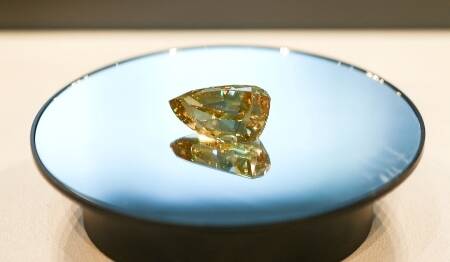 苏富比展出303.1克拉无暇黄钻 金光闪闪取名“金丝雀”