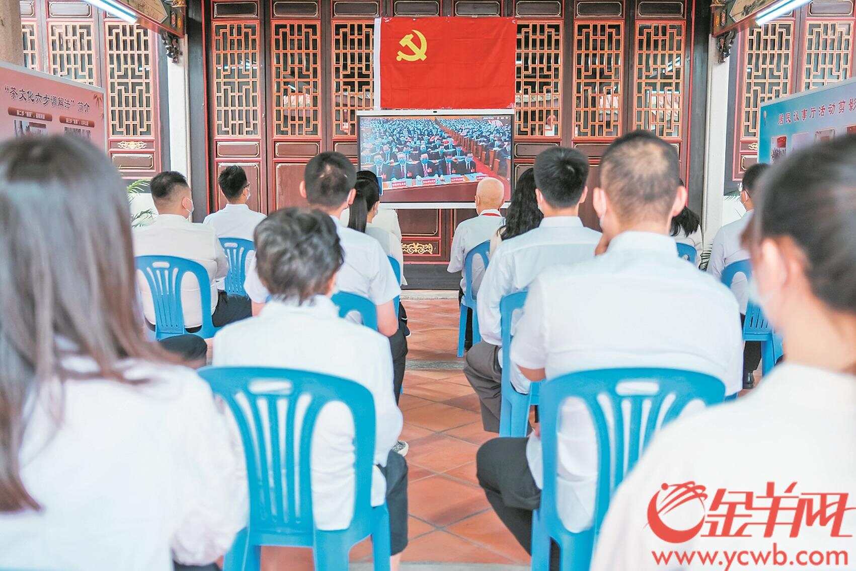 10月16日上午,潮州市湘桥区太平街道开元社区、韩山师范学院分别组织党员群众收听收看党的二十大开幕会直播。