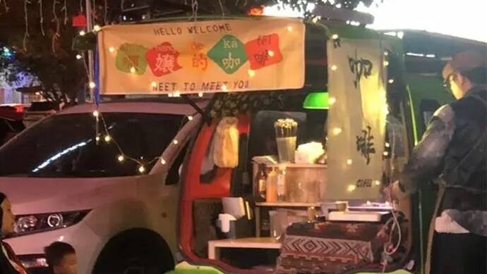 在浙江省杭州市武林夜市,一辆粉色的小轿车被改造成手打柠檬茶铺位,车身上贴满了各式各样吸引眼球的标语。凭借着出色的饮品口感和独特的车身打扮,这个后备厢摊位成了网红打卡点。