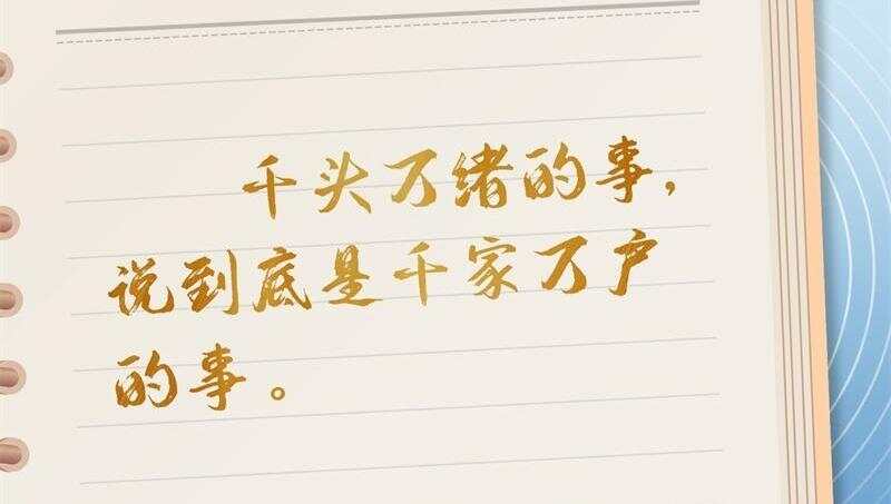 大国之大,也有大国之重。千头万绪的事,说到底是千家万户的事。我调研了一些地方,看了听了不少情况,很有启发和收获。每到群众家中,常会问一问,还有什么困难,父老乡亲的话我都记在心里。