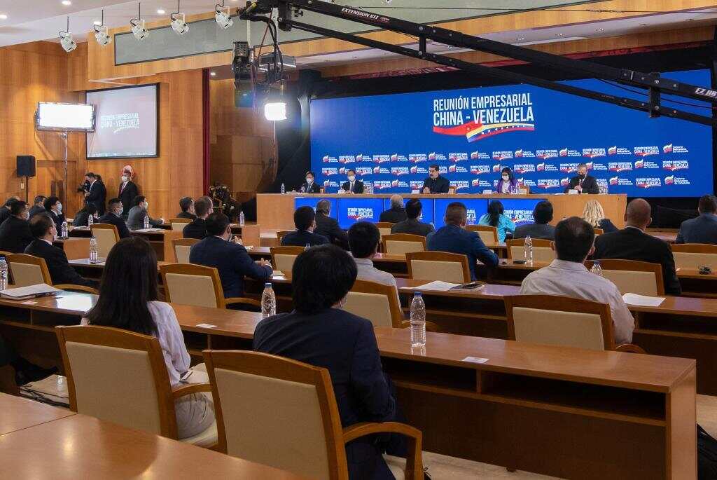 2020年11月6日,委内瑞拉总统马杜罗率内阁主要成员与中资企业代表举行座谈会,希望进一步推进两国务实合作,造福两国人民。新华社发(萨尔戈多摄)