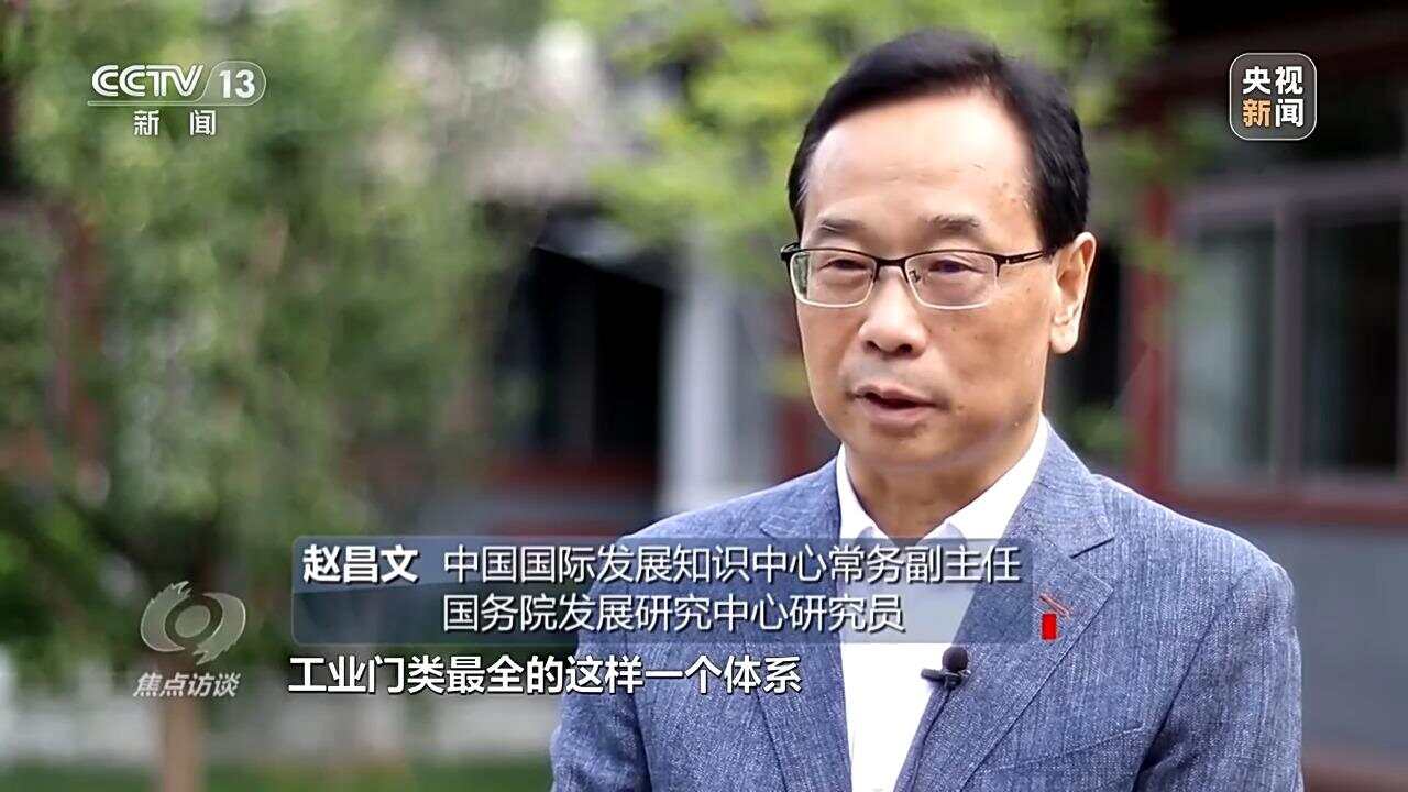 赵昌文:新型工业化我们取得了巨大成就,一是建立起了世界上最完整的工业体系,我们有44个大类,207个中类,666个小类,联合国产业分类中,工业门类最全的这样一个体系;二是我们成为世界制造业的第一大国,2022年制造业增加值占全球接近三分之一。