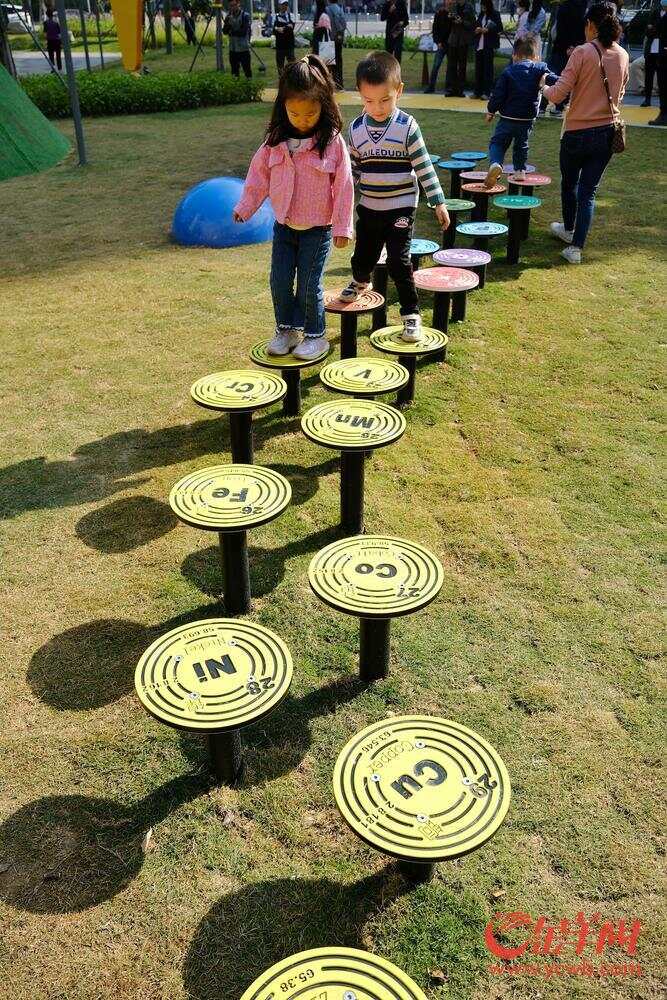 崇文三路口袋公园以“都市活力绿心”为主题,是华南植物园城园融合试点之一,园内种植有各种生态野趣的观赏草,配合科普牌的设置,让儿童可以认识植物。此外,还设有以化学元素为主题的活动项目,让孩子们在玩乐中学习科学知识。