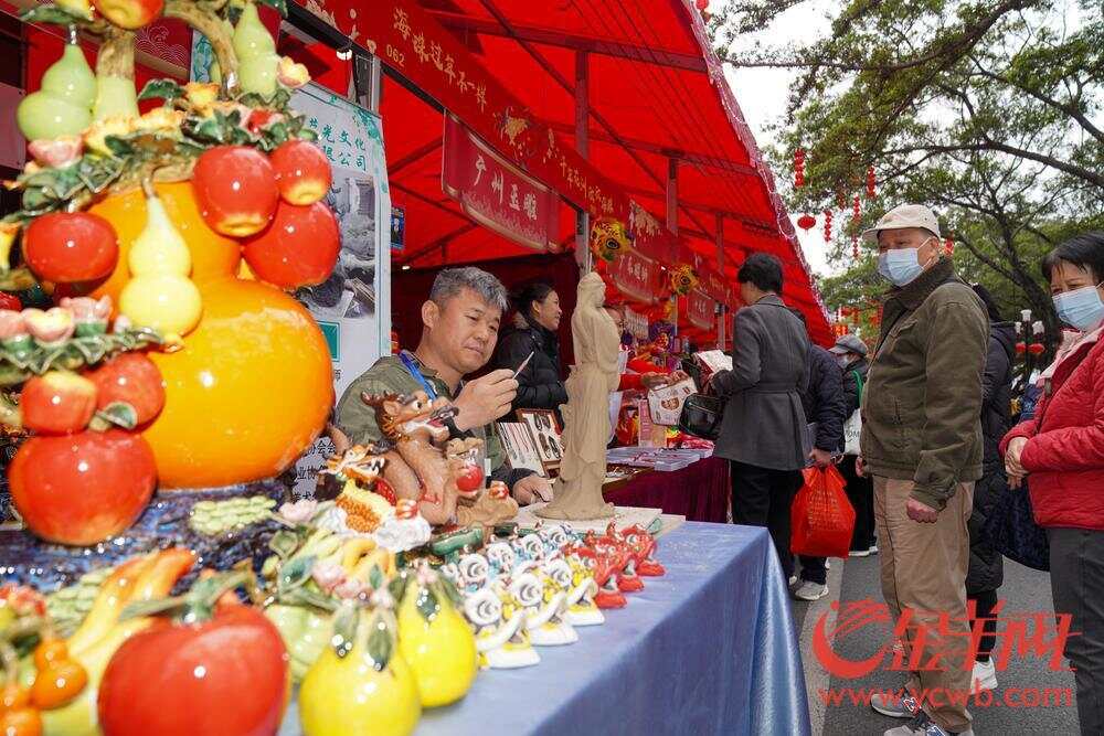 此外,海珠花市特别设置了观赏鱼、手工艺品、风味小吃等摊位,满足更多市民游客置办年货、装饰居室的需要。不少档位摆出了龙年元素的利是封、挂件以及带有生肖龙图案的各类手工制品,结合广绣技艺等非遗技艺,增添浓浓年味。