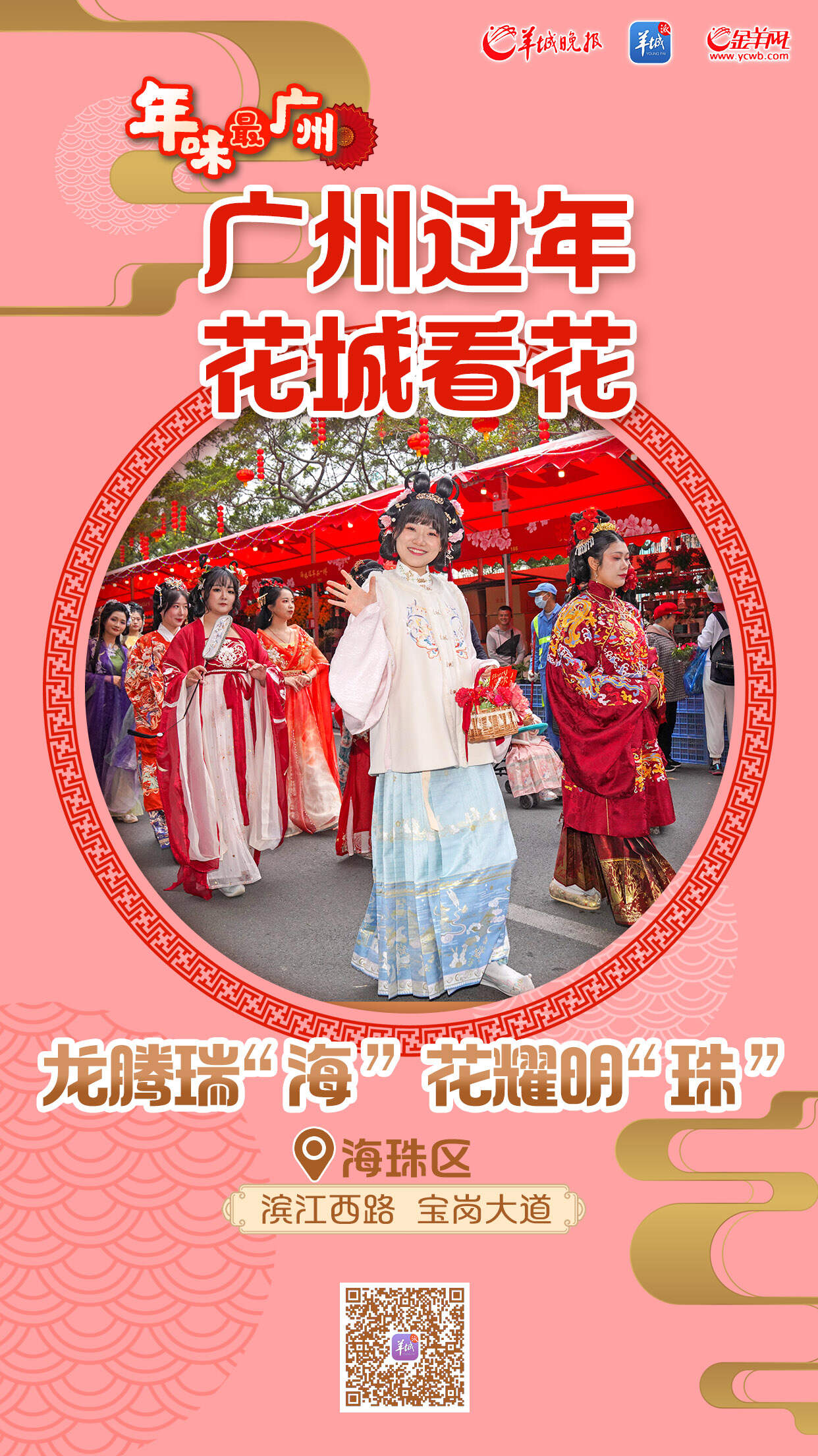 羊城晚报全媒体记者获悉,今年海珠区花市主会场设在滨江西路(人民桥以东至解放桥以西)、宝岗大道(滨江西路口至南华西路口),举办时间为2月6日8时30分至2月10日2时(为期4天)。