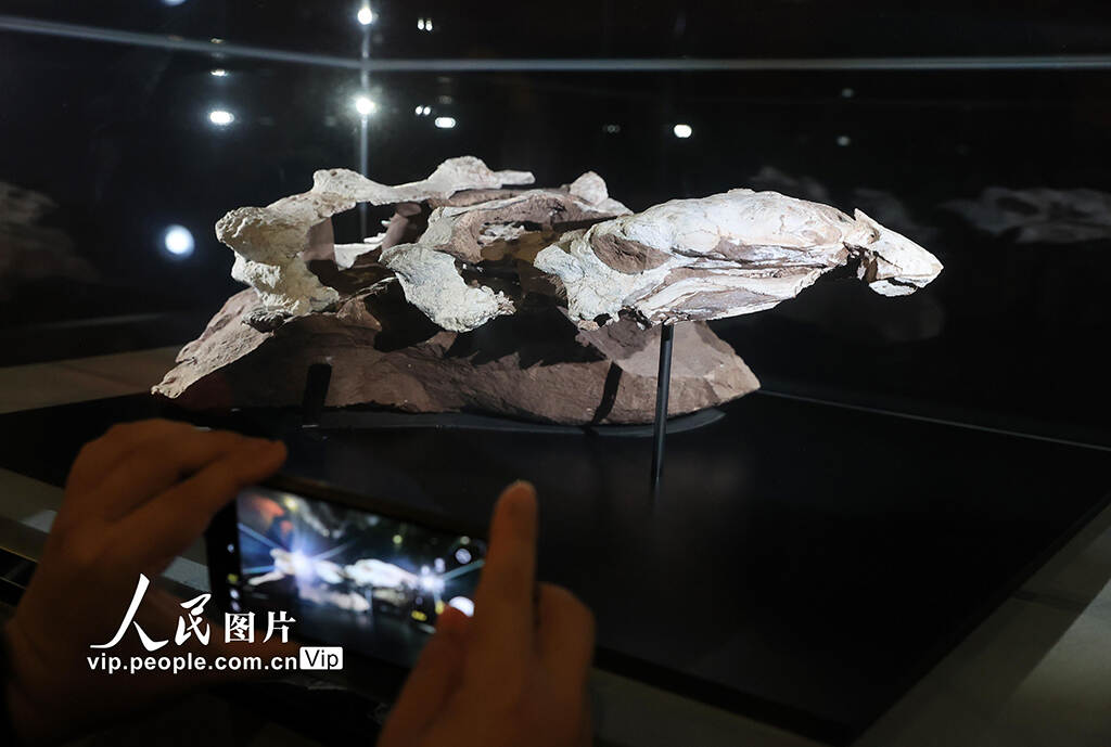 据悉,甲龙是一类非常著名的恐龙,生活在晚白垩世的北美和亚洲。甲龙类最大的特点是从头到尾有大量的骨板覆盖,因此常被称为“坦克龙”。甲龙亚科成员尺寸较大、头身都较宽,并具有发达的尾锤。丰晓飞摄(人民图片网)