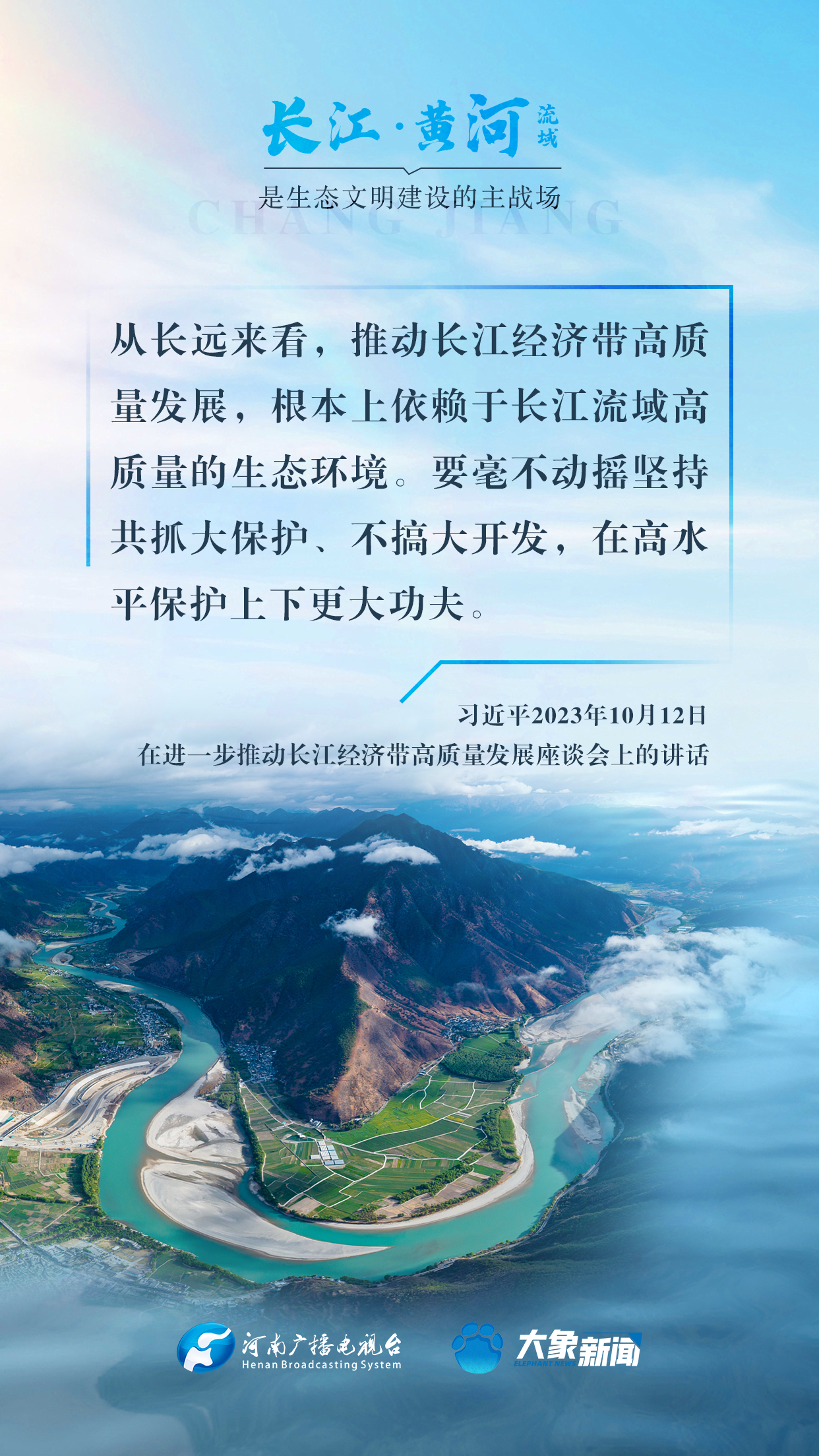 长江、黄河都是中华民族的母亲河,习近平总书记高度重视长江、黄河的生态保护,多次谆谆告诫:“保护母亲河是事关中华民族伟大复兴和永续发展的千秋大计”“长江、黄河流域是生态文明建设的主战场”等等。在第55个世界地球日到来之际,大象新闻与您一起,感受总书记对母亲河的深厚情怀。