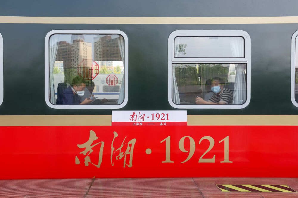 每天8时53分从上海西站开出,18时10分由嘉兴站返回,单程约一个半小时,这是“南湖·1921”列车时刻表。这列2021年6月首发的红色旅游列车,复原了中共一大代表的行车路线。