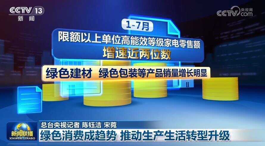 绿色消费扩容提质,持续激发市场活力。最新数据显示,1—7月,限额以上单位高能效等级家电零售额增速近两位数,绿色建材、绿色包装等产品销量增长明显。7月份,新能源汽车零售量同比增长36.9%,市场渗透率超五成。