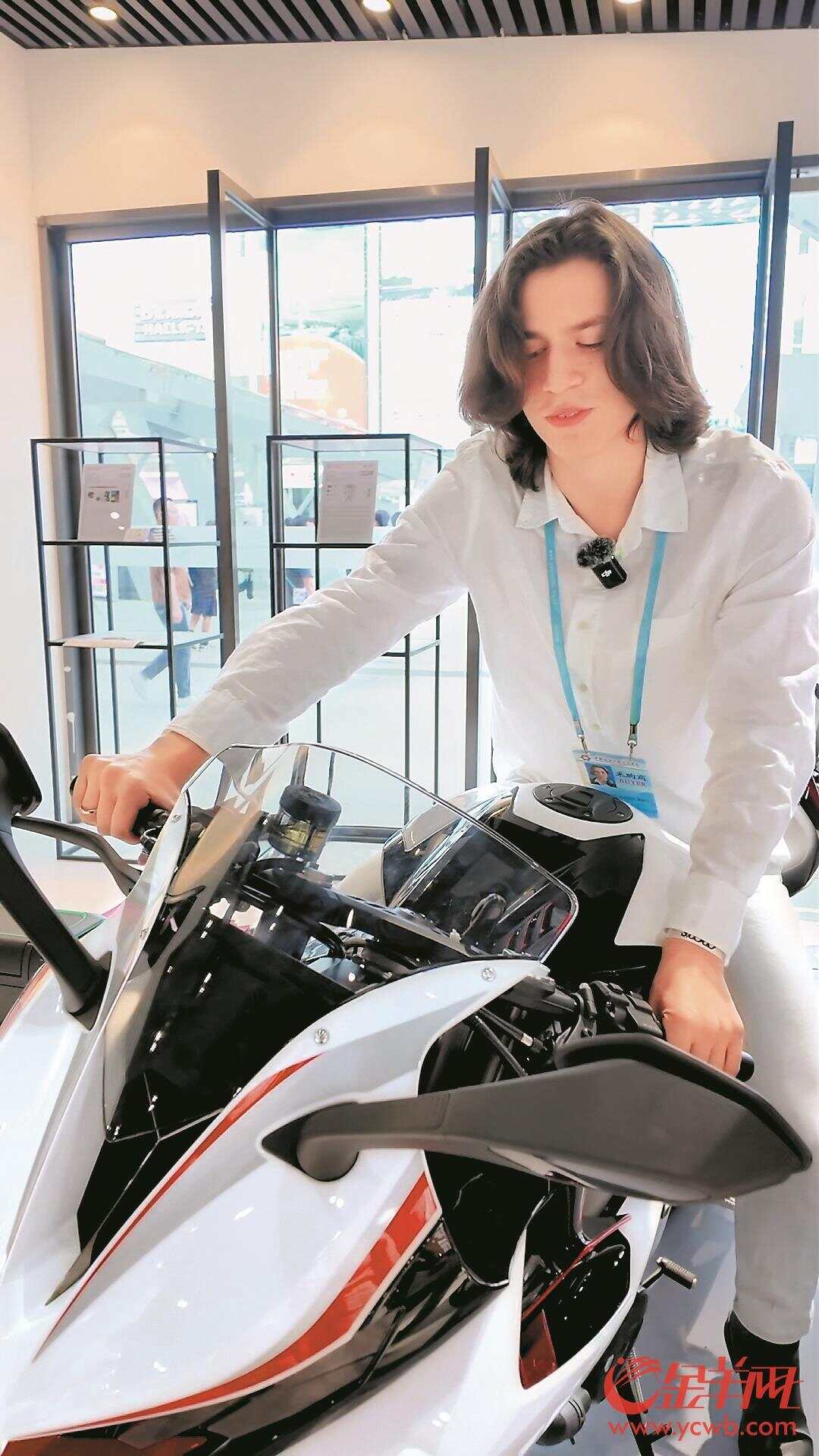 来自委内瑞拉的暨南大学留学生莫拉一踏入广交会设计创新奖展区,就被升仕703RR摩托车的前卫设计吸引。作为摩托车爱好者的莫拉忍不住称赞道:“这款摩托车的黑白红配色看起来十分酷炫,座椅也相当舒适,特别是车身的流线设计,既现代又时尚。”据展台工作人员介绍,这辆摩托车的流线造型灵感来源于跑车设计,凭借其创新理念荣获了广交会设计创新奖金奖。