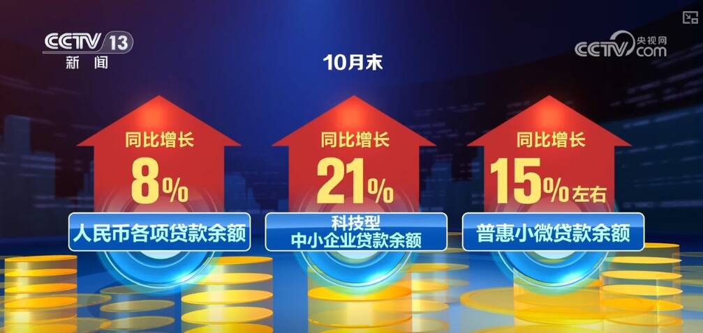 10月末,广义货币(M2)余额309.71万亿元,同比增长7.5%,增速比上月末高0.7个百分点,连续第二个月回升。贷款方面,10月末,人民币各项贷款余额同比增长8%。其中,科技型中小企业、普惠小微贷款等领域贷款投放均明显高于全部贷款增速。