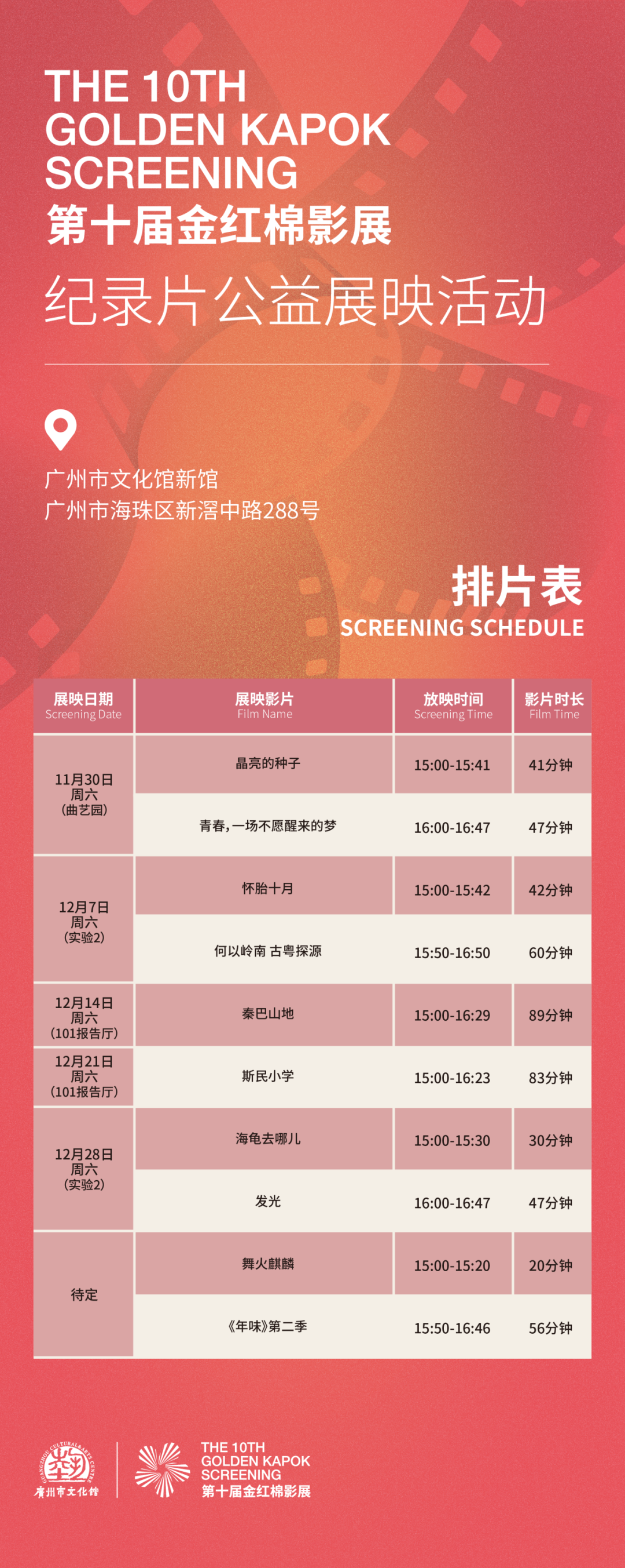 【附】第十届金红棉影展纪录片公益展映活动(广州市文化馆站)排片表