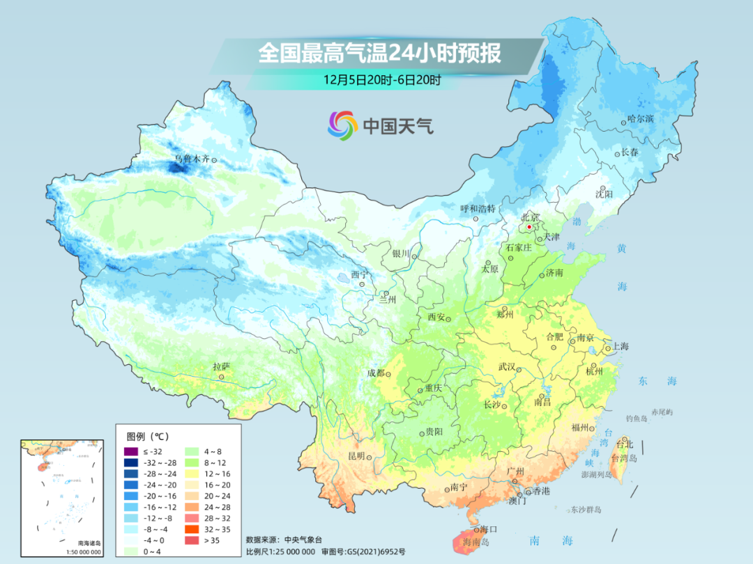 今天(12月5日),北方大部地区降水稀少,内蒙古东北部、黑龙江仍有降雪,需注意防范。明天开始,北方新一股冷空气又将上线,受其影响,周末部分地区最高气温或将创今年下半年来新低。至于南方,今明天阴雨天气持续,以小到中雨为主,体感较为湿冷。