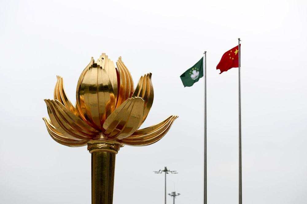 2024年11月21日在澳门金莲花广场拍摄的“盛世莲花”雕塑。