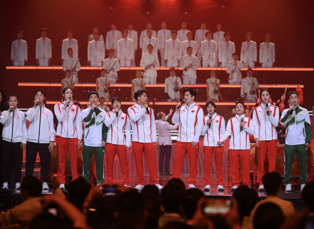 2024年9月22日,在2024“湾区升明月”大湾区电影音乐晚会上,澳门体育运动员代表与参加巴黎奥运会的内地健儿一起演唱歌曲。