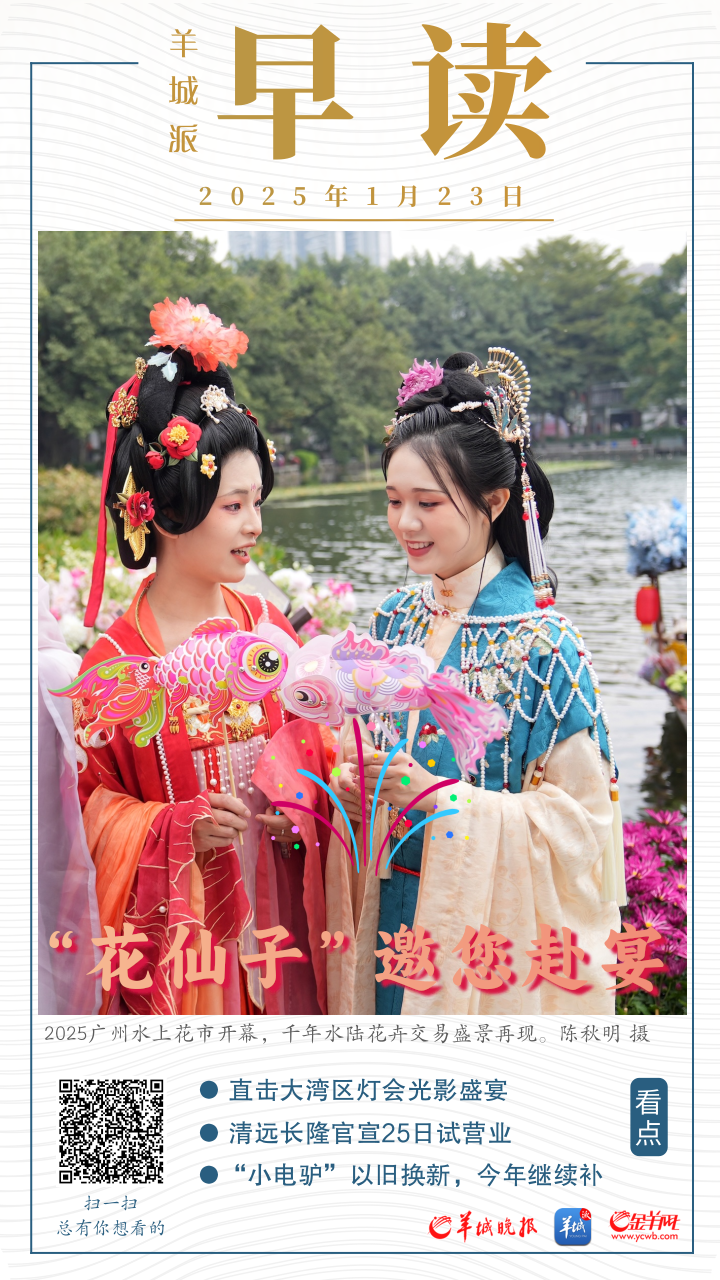 簪花女神、齐天大圣亮了!直击大湾区灯会光影盛宴。详情-->“花仙子”“卖花郎”现身,2025广州水上花市开幕。详情--> 倒计时3天,2025年广州天河奥体迎春花市交通指南请收好。详情-->
