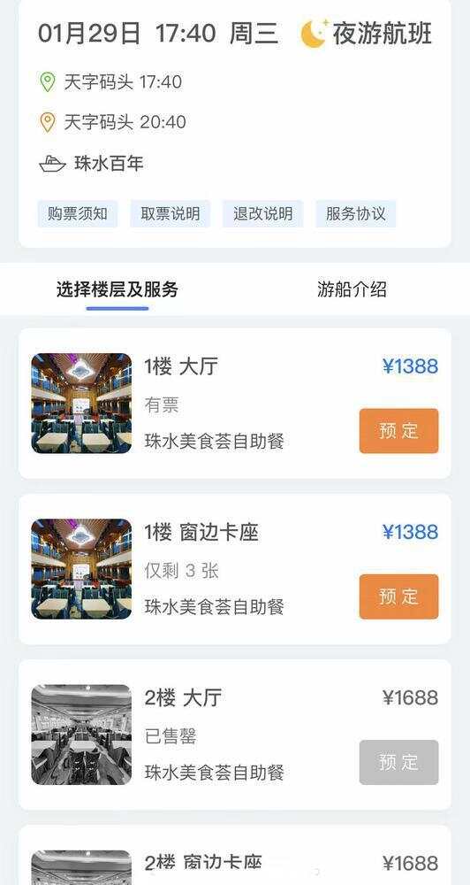 看烟花、游珠江、品美食融入一张船票中,一次行程多种体验。烟花航班的船票分1388元/人及1688元/人两档,部分主题游船设有可坐10人以上、带独立观景阳台的包房,市民游客可通过“遇见珠水”小程序及“天字码头珠江游”小程序,查看“烟花航班”详情及购票方式,也可以通过拨打电话020-34377433、020-83332222预订。