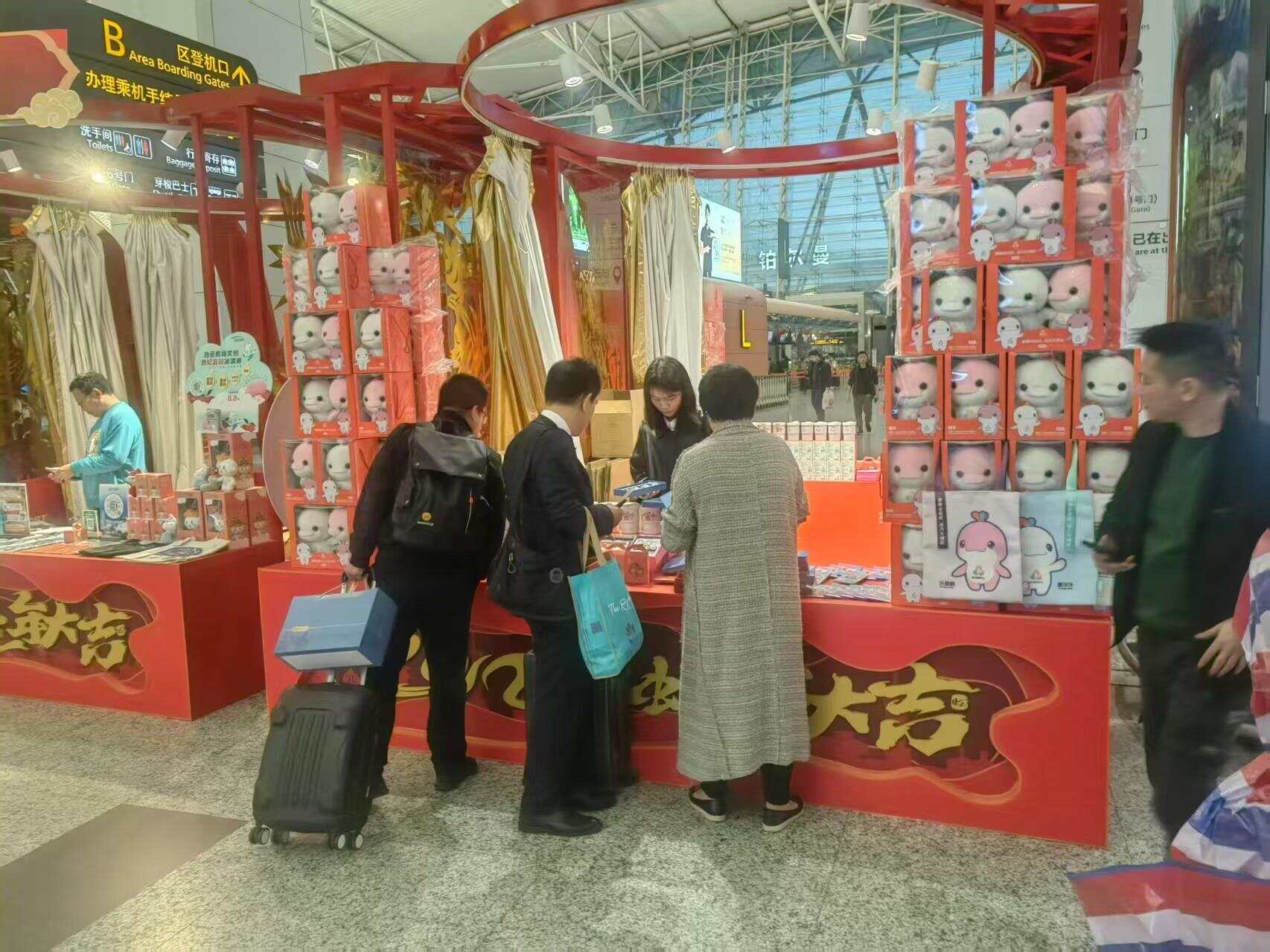 记者在广州的广东大厦、广东迎宾馆、白天鹅宾馆、华厦大酒店、亚洲国际大酒店、白云宾馆等酒店大堂以及天河城商场等地看到,选购特许商品的市民、游客络绎不绝。在佛山、中山、江门、肇庆、惠州、梅州、汕尾、汕头、河源、阳江、清远等地的部分高速服务区,在湛江徐闻港码头,在广州蓝海豚珠江夜游客轮上,游客们都能看到“喜洋洋”“乐融融”的身影,“可爱到发芽”的它们也将为大家在返乡和游玩的旅途中增添乐趣。