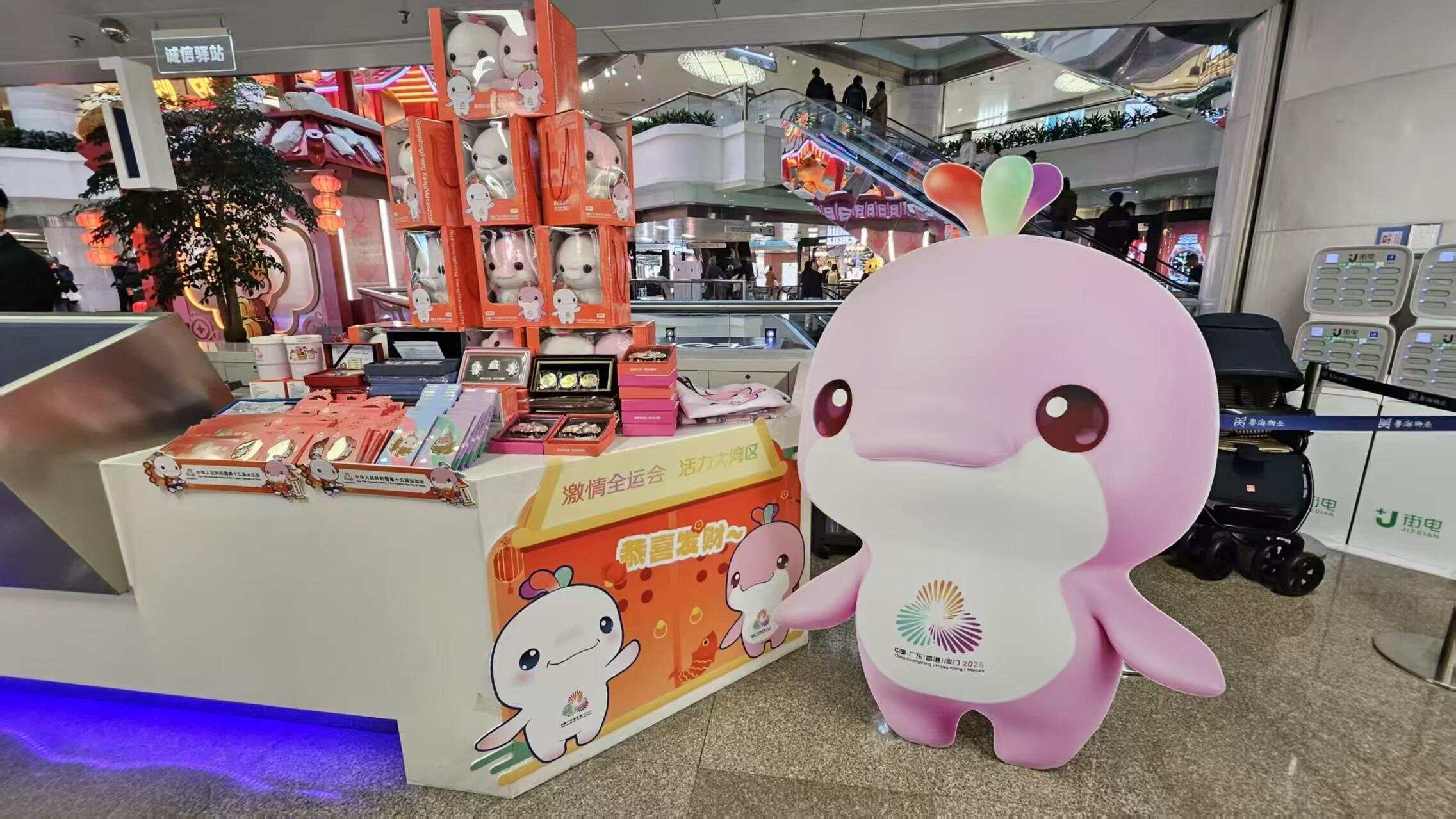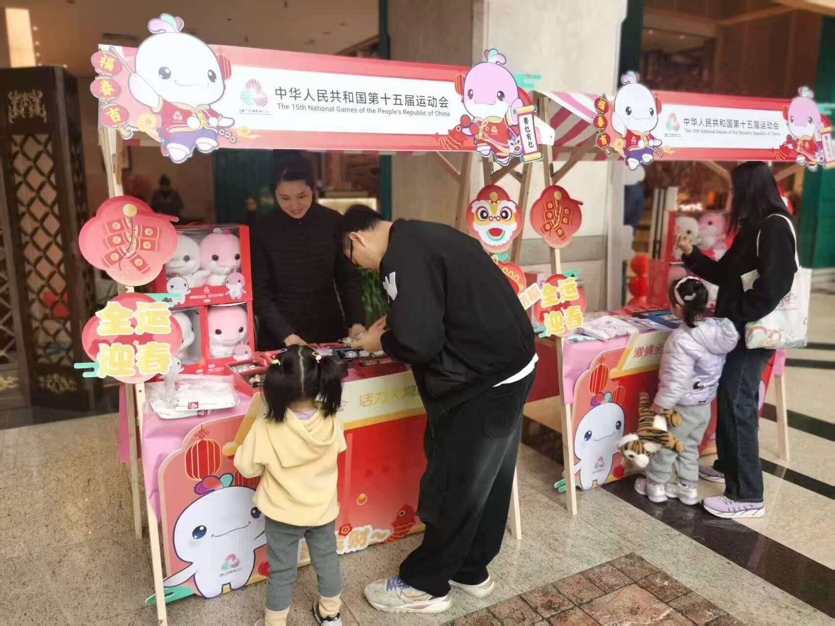 为响应市民、游客对十五运会的高度关注和对特许商品的喜爱,满足群众春节出行期间的购买需求,十五运会广东赛区执委会携手多家省属国企整合资源、调集商品、协调物流、增开专柜,在机场、码头、游轮、高速服务站、酒店、商场、景区等场所密集开设特许商品快闪店,展示及售卖特许商品。