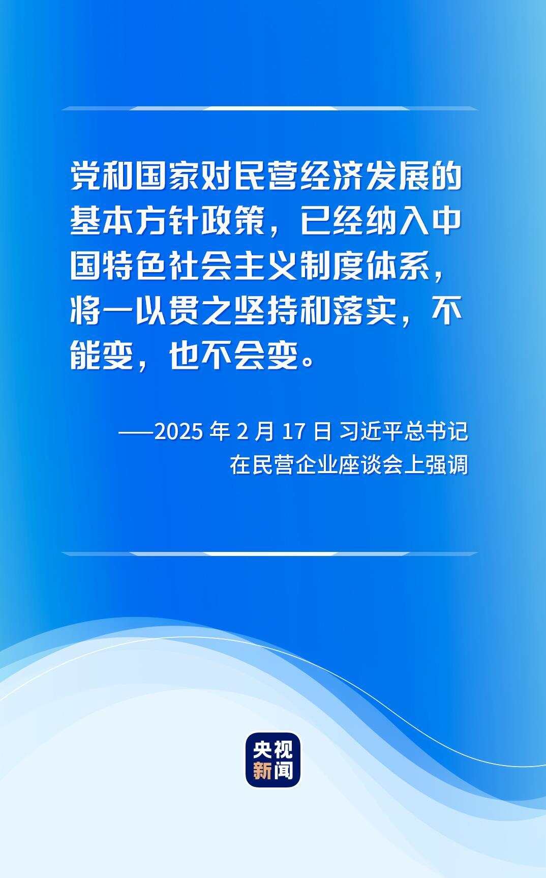 这次座谈会上,习近平总书记再次强调:“几十年来,关于对民营经济在改革开放和社会主义现代化建设事业中地位和作用的认识、党和国家对民营经济发展的方针政策,我们党理论和实践是一脉相承、与时俱进的。”“党和国家坚持和完善社会主义基本经济制度,毫不动摇巩固和发展公有制经济,毫不动摇鼓励、支持、引导非公有制经济发展”。